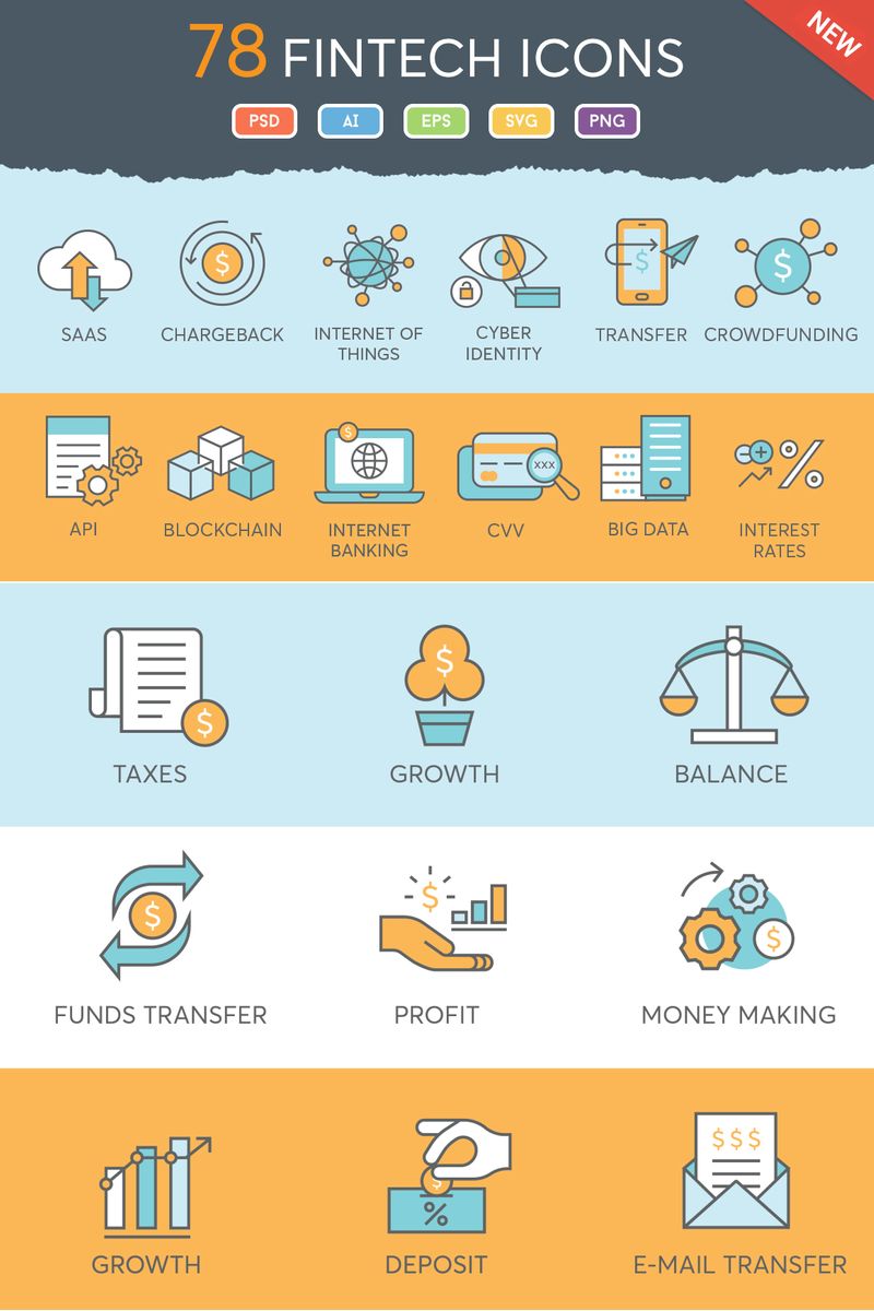 Download 78 Fintech Icons Set - Набор иконок на тему графика