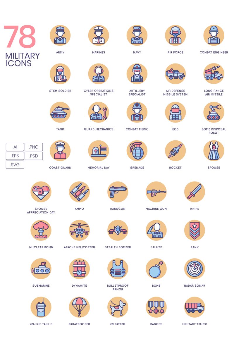 Download Набор иконок "78 Military Icons - Butterscotch Series Set" / 78 Military Icons - Butterscotch Series Set - Набор иконок на тему графика