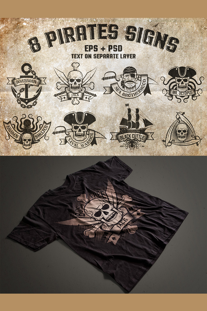Download Иллюстрация "8 Pirates Signs - Illustration" / 8 Pirates Signs - Illustration - Иллюстрация на тему графика emblem badge label illustration banner professional poster stamp ribbon symbol