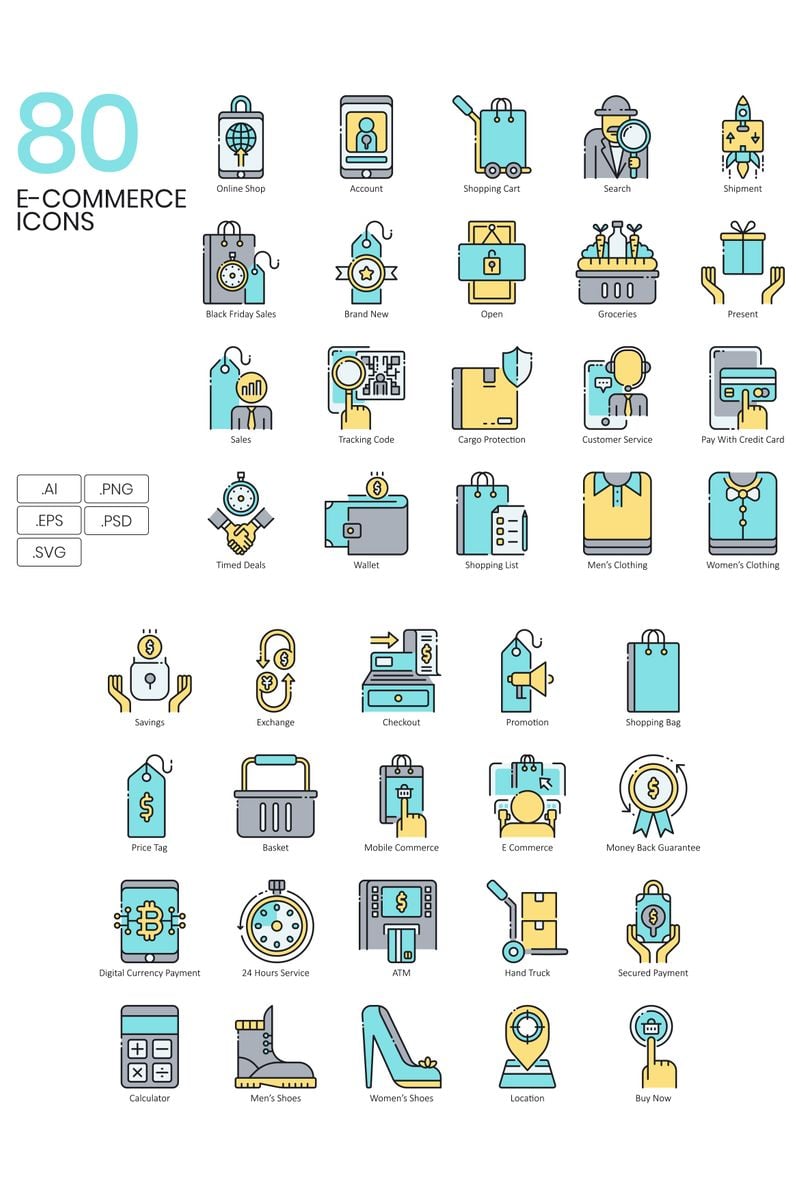 Download Набор иконок "80 E-commerce Icons - Aqua Series Set" / 80 E-commerce Icons - Aqua Series Set - Набор иконок на тему графика