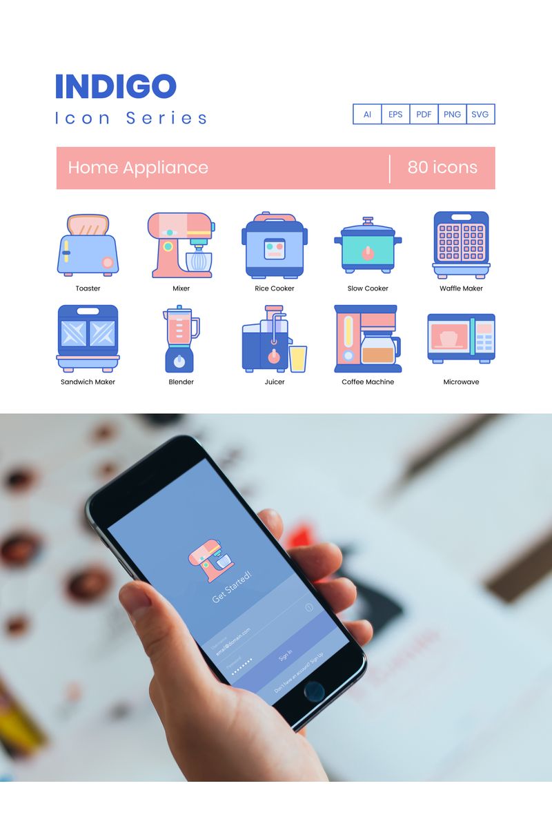 Download Набор иконок "80 Home Appliances Icons - Indigo Series Set" / 80 Home Appliances Icons - Indigo Series Set - Набор иконок на тему графика