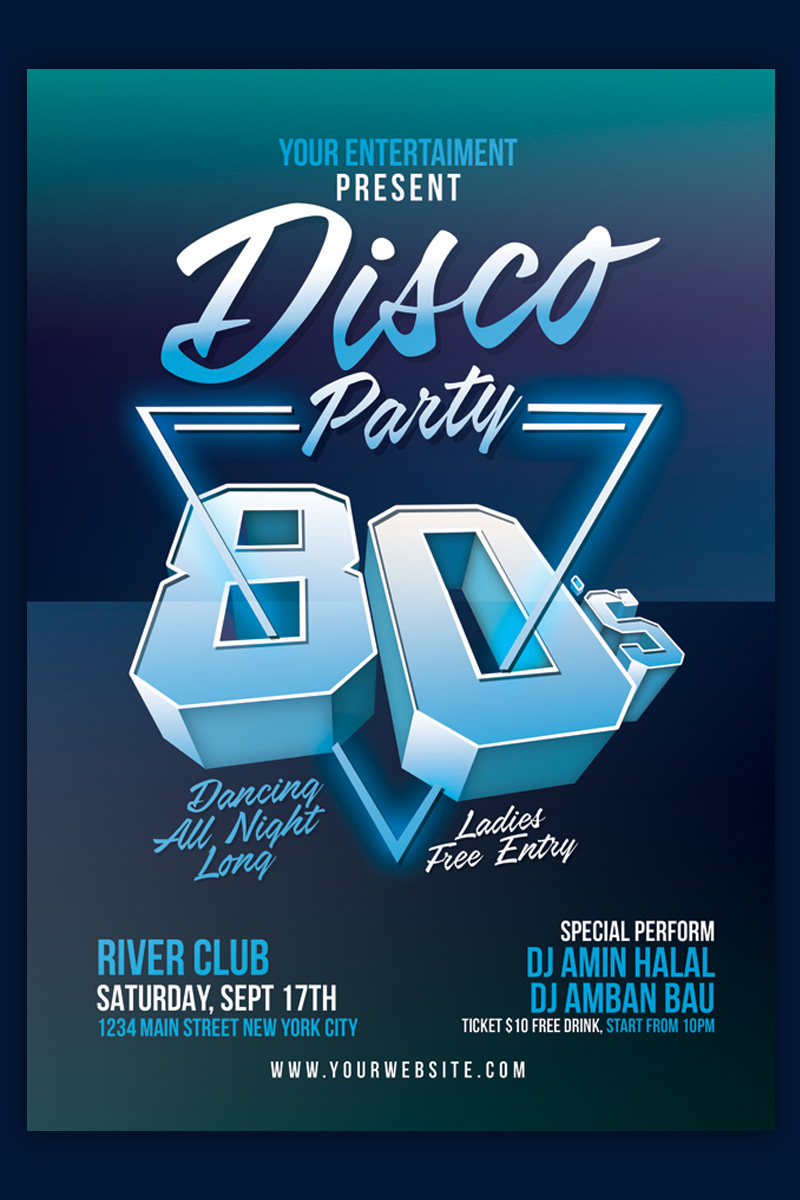 Download Фирменный стиль "80's Disco Party - Corporate Identity Template" / 80's Disco Party - Corporate Identity Template - Фирменный стиль на тему графика 3d 80's club colorful cool cs cube dance disco dpi eighties flyer moment of the party retro template glow photoshop