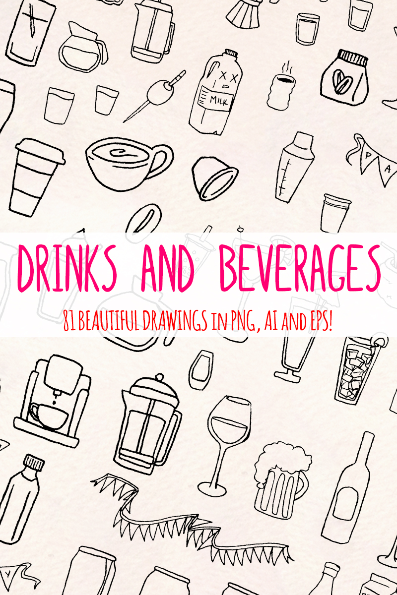 Download Иллюстрация "81 Beverage and Drink - Illustration" / 81 Beverage and Drink - Illustration - Иллюстрация на тему графика graphics blog illustration vector commercial use hand drawn website etsy seller shop drinks clip art drinking beverage soda