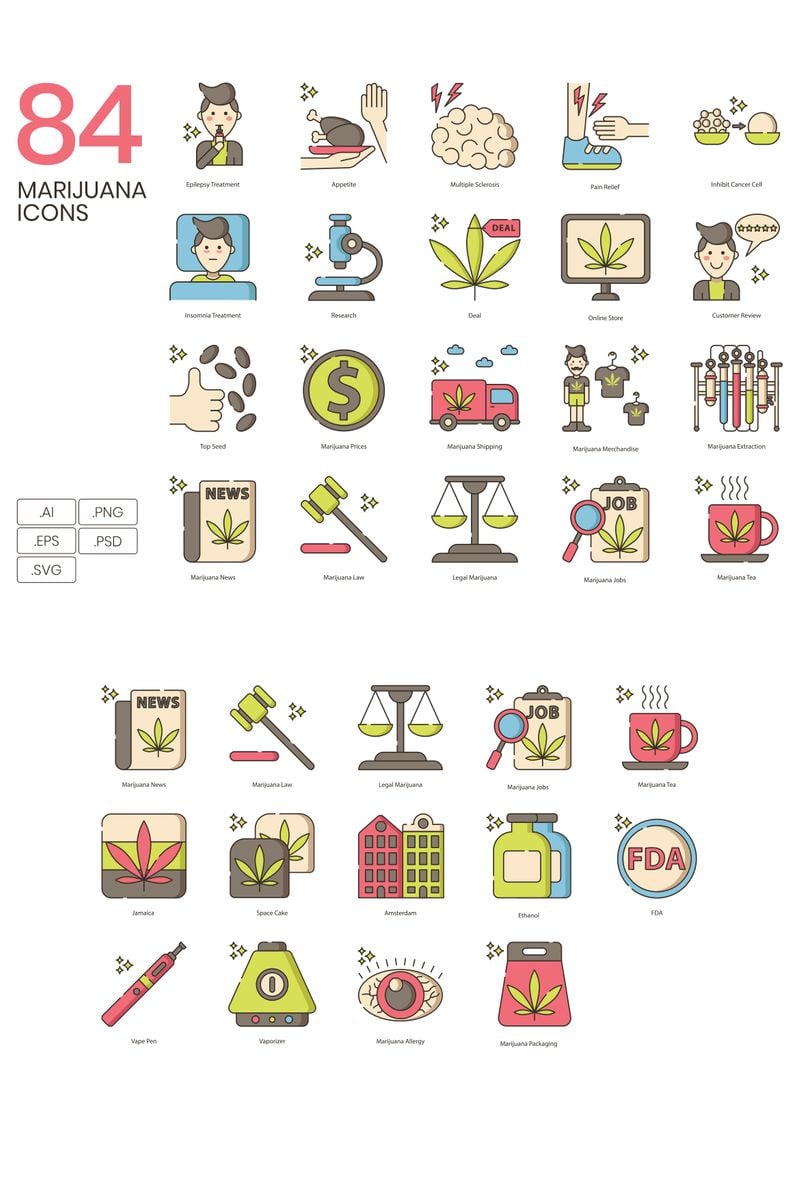 Download Набор иконок "84 Marijuana Icons - Hazel Series Set" / 84 Marijuana Icons - Hazel Series Set - Набор иконок на тему графика