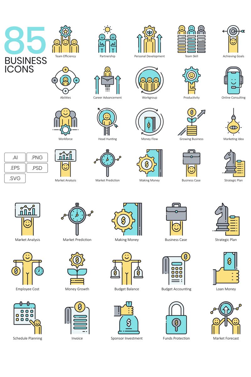 Download Набор иконок "85 Business Icons - Aqua Series Set" / 85 Business Icons - Aqua Series Set - Набор иконок на тему графика