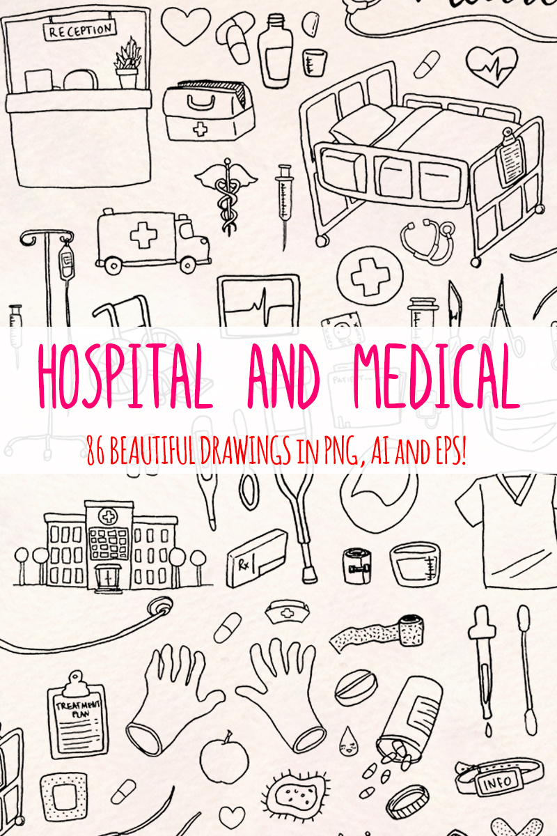 Download Иллюстрация "86 Hospital and Medical Doctor - Illustration" / 86 Hospital and Medical Doctor - Illustration - Иллюстрация на тему графика graphics blog illustration vector commercial use hand drawn website medical medicine hospital doctor scrubs ward