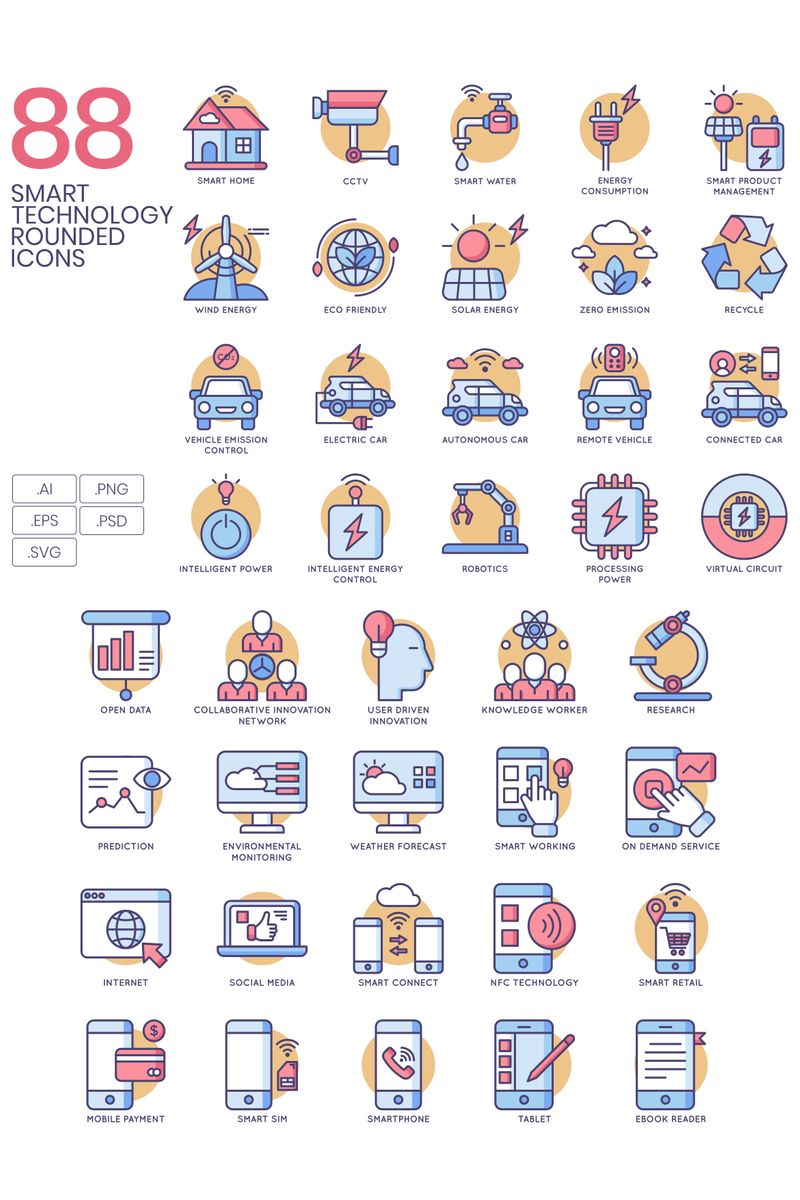 Download Набор иконок "88 Smart Technology Icons - Butterscotch Series Set" / 88 Smart Technology Icons - Butterscotch Series Set - Набор иконок на тему графика