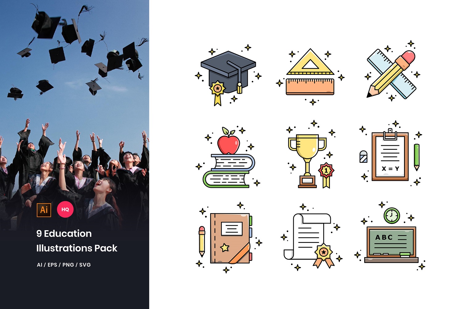 Download Иллюстрация "9 Education Pack - Illustration" / 9 Education Pack - Illustration - Иллюстрация на тему графика illustration,vector,icon,graphic,education,book,study,student,teacher,lecturer,graduation,school,university