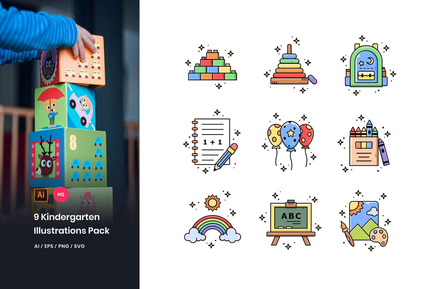 Download Иллюстрация "9 Kindergarten Pack - Illustration" / 9 Kindergarten Pack - Illustration - Иллюстрация на тему графика icons,vector,illustrations,graphics,kindergarten,education,childhood,school,preschool,kids,classroom,playground,children,fun,baby