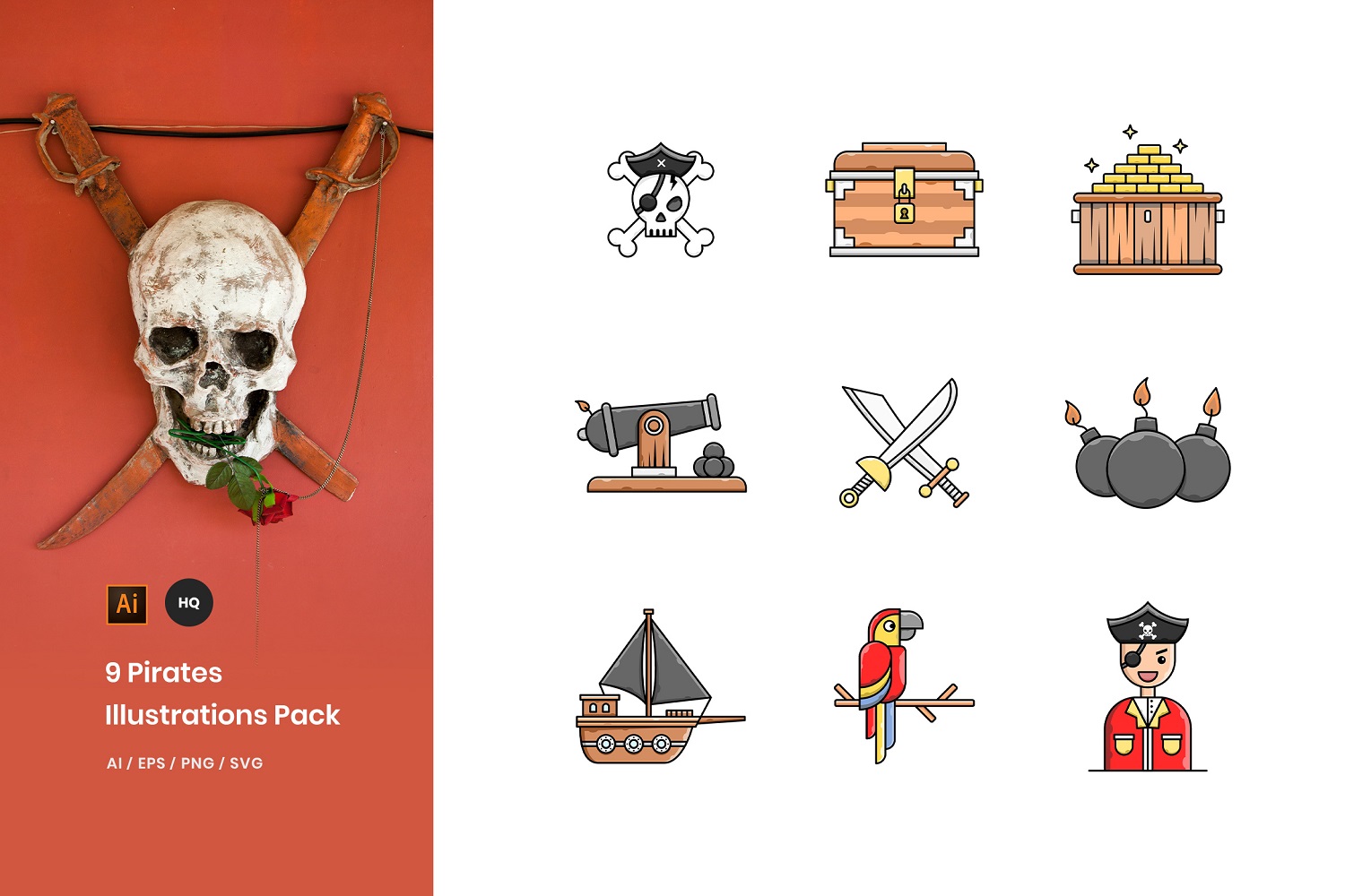 Download Иллюстрация "9 Pirates Pack - Illustration" / 9 Pirates Pack - Illustration - Иллюстрация на тему графика icons,vector,illustrations,graphics,pirates,sea,ship,skull,bomb,sail,treasure,map,sailor,ocean,boat