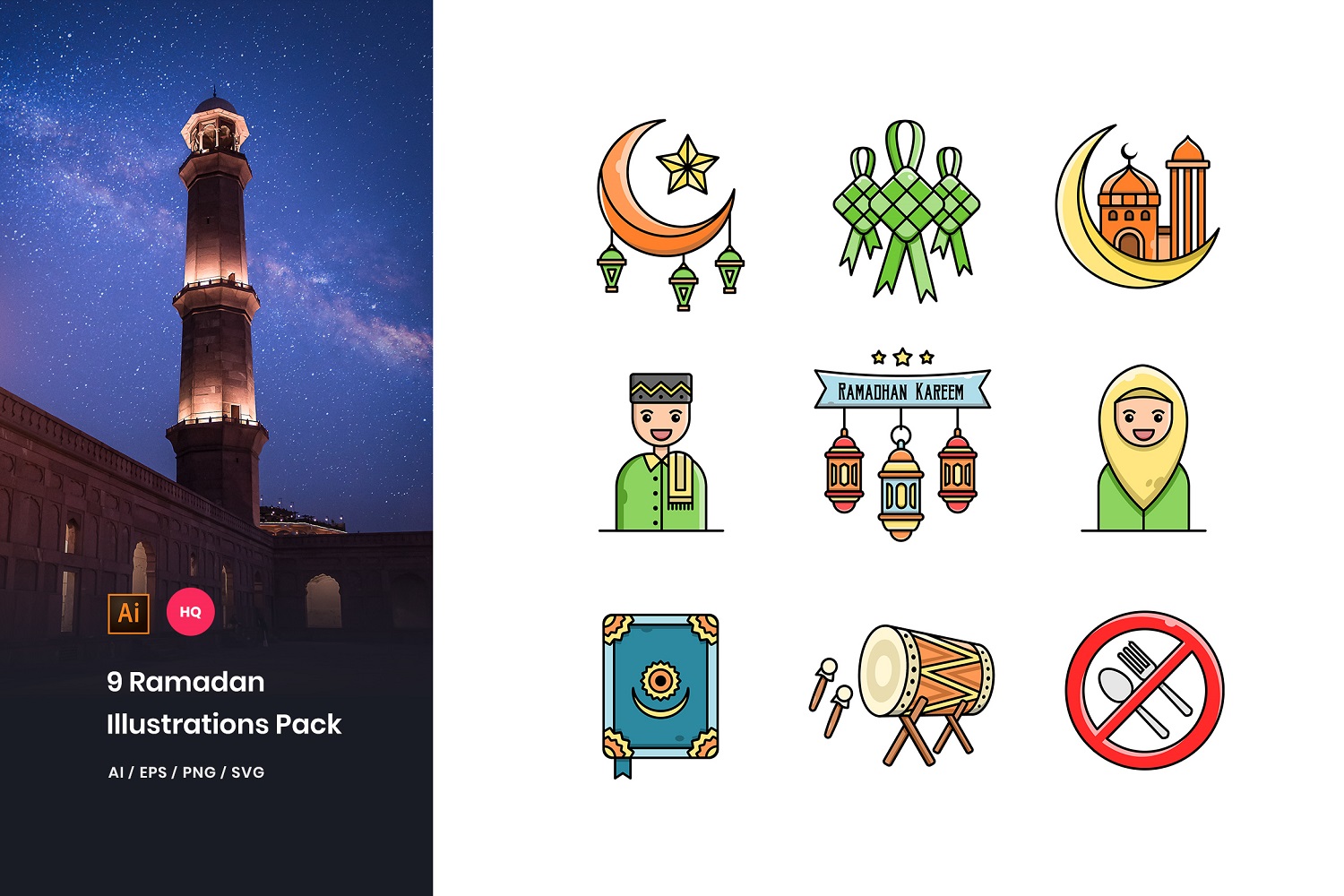 Download Иллюстрация "9 Ramadan Mubarak Pack - Illustration" / 9 Ramadan Mubarak Pack - Illustration - Иллюстрация на тему графика illustration,vector,flat,ramadan,mubarak,kareem,ramadhan,moslem,islam,fasting,mosque,religion,eid,muslim,arabic
