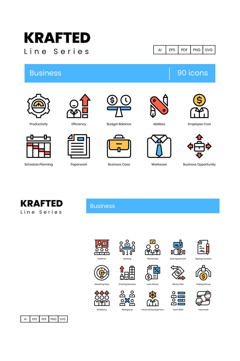 Download Набор иконок "90 Business Icons - Krafted Series Set" / 90 Business Icons - Krafted Series Set - Набор иконок на тему графика