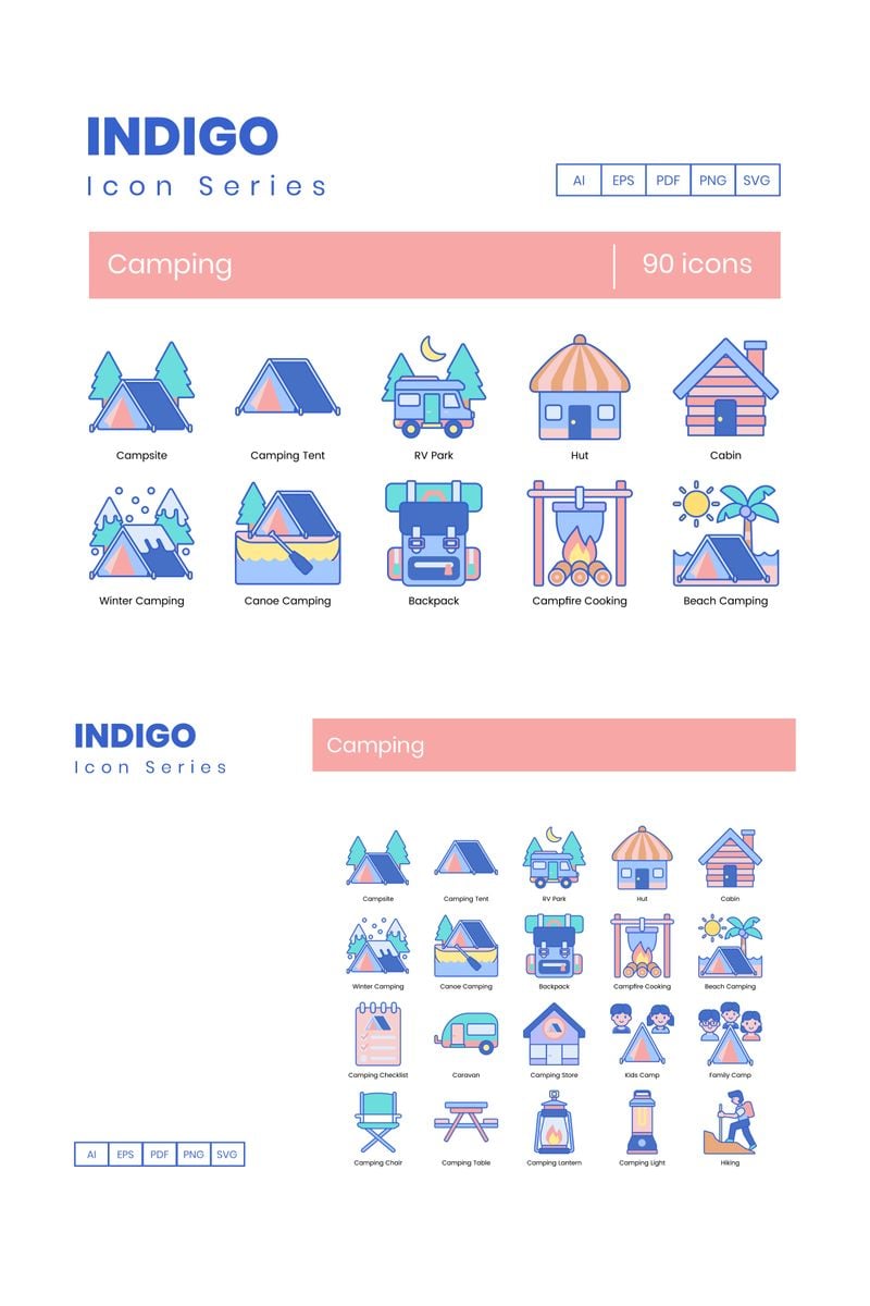 Download Набор иконок "90 Camping Icons - Indigo Series Set" / 90 Camping Icons - Indigo Series Set - Набор иконок на тему графика