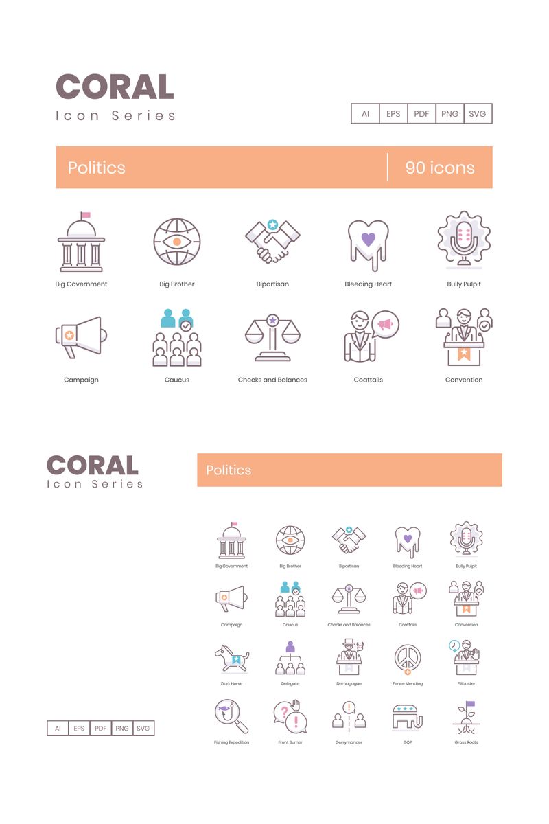 Download Набор иконок "90 Politics Icons - Coral Series Set" / 90 Politics Icons - Coral Series Set - Набор иконок на тему графика