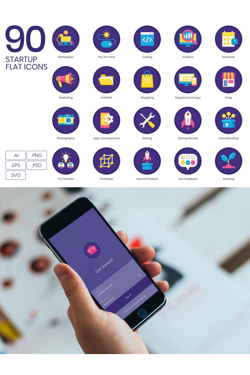 Download Набор иконок "90 Startup Icons - Orchid Series Set" / 90 Startup Icons - Orchid Series Set - Набор иконок на тему графика
