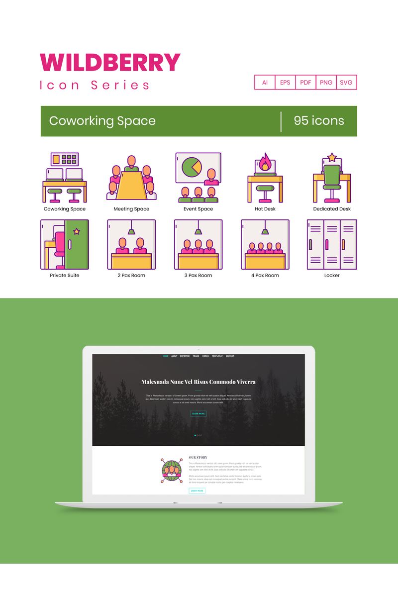 Download Набор иконок "95 Coworking Space Icons - Wildberry Series Set" / 95 Coworking Space Icons - Wildberry Series Set - Набор иконок на тему графика