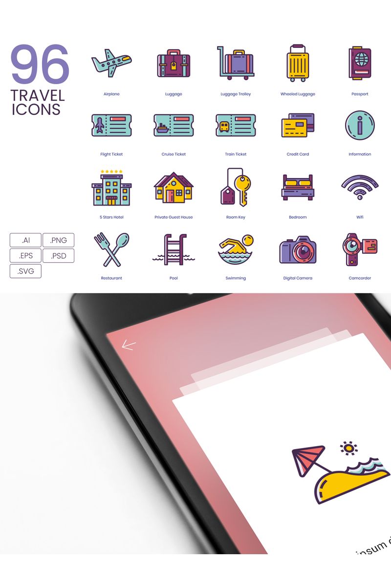 Download Набор иконок "96 Travel Icons - Lilac Series Set" / 96 Travel Icons - Lilac Series Set - Набор иконок на тему графика