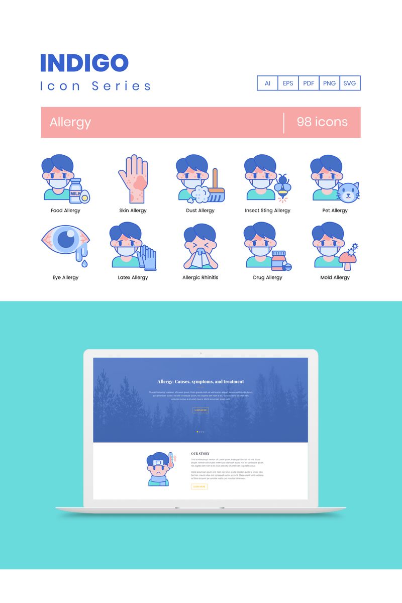 Download Набор иконок "98 Allergy Icons - Indigo Series Set" / 98 Allergy Icons - Indigo Series Set - Набор иконок на тему графика