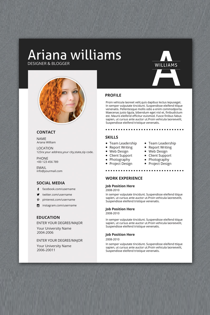 Download Резюме "A Williams Professional Resume Template" / A Williams Professional Resume Template - Резюме на тему графика resume designer cv template creative modern black white biodata professional simple minimal clean job student design layout