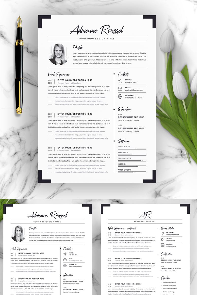 Download Резюме "Adrienne Resume Template" / Adrienne Resume Template - Резюме на тему графика 1 page resume 2 clean cv cover letter design template illustrator eps mac pages microsoft word modern photoshop psd professional