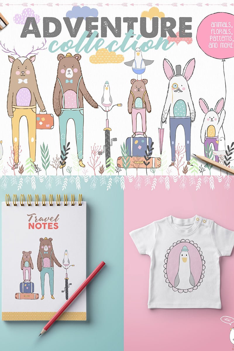 Download Иллюстрация "Adventure Collection - Illustration" / Adventure Collection - Illustration - Иллюстрация на тему графика pattern adventure travel holidays holiday rabbit bear animals flower floral wedding leaf leaves logo logos invitation card kids baby sticker