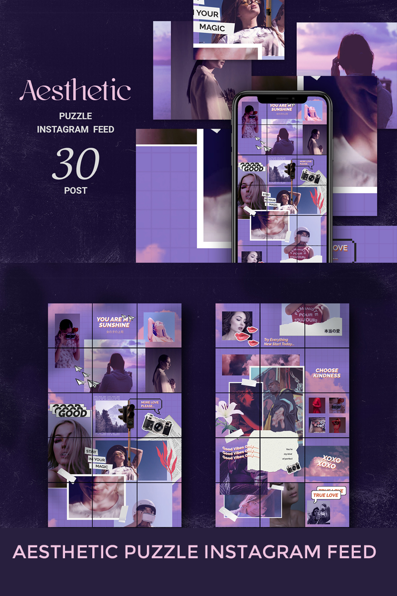 Download Шаблон для соцсетей "Aesthetic Puzzle Instagram Feed Social Media Template" / Aesthetic Puzzle Instagram Feed Social Media Template - Шаблон для соцсетей на тему графика blogger templates dark ecommerce facebook banner fashion feminine influencer instagram post instagram stories jewelry store orange social media texture typography