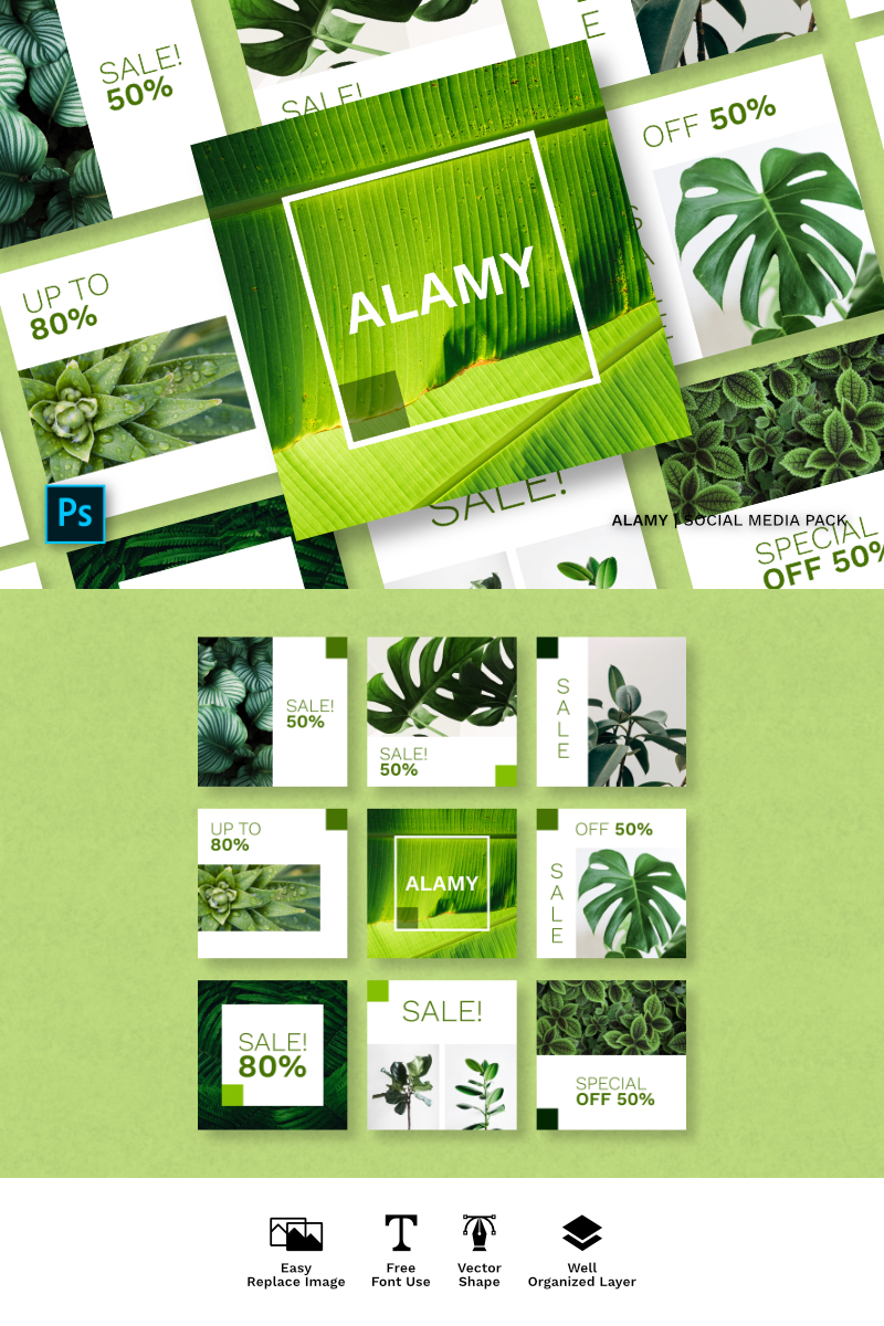 Download Шаблон для соцсетей "Alamy Pack Social Media Template" / Alamy Pack Social Media Template - Шаблон для соцсетей на тему графика instagram facebook twitter banner template sale media social background design vector fashion promotion stories instagramtemplates post