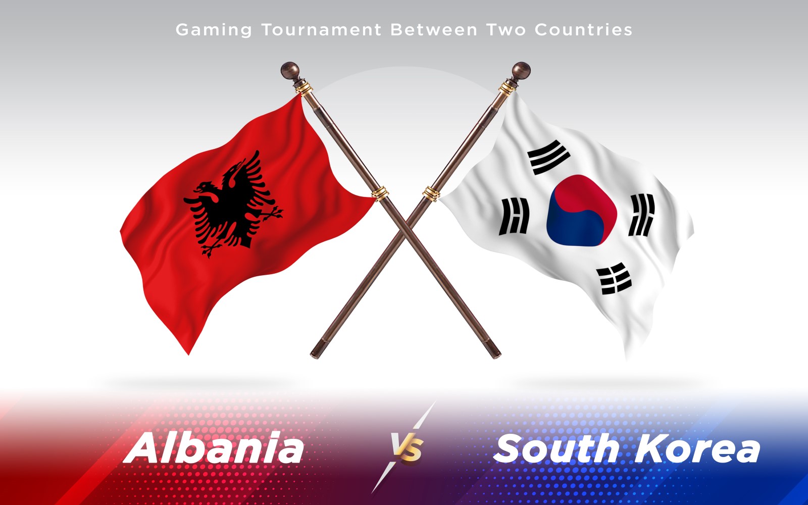 Download Иллюстрация "Albania versus South Korea Two Countries Flags - Illustration" / Albania versus South Korea Two Countries Flags - Illustration - Иллюстрация на тему графика national,patriotic,europe,asia,republic,map,flag,country,cartography,geography,nation,illustration,graphic,vector,state,world,isolated,symbol,border,icon