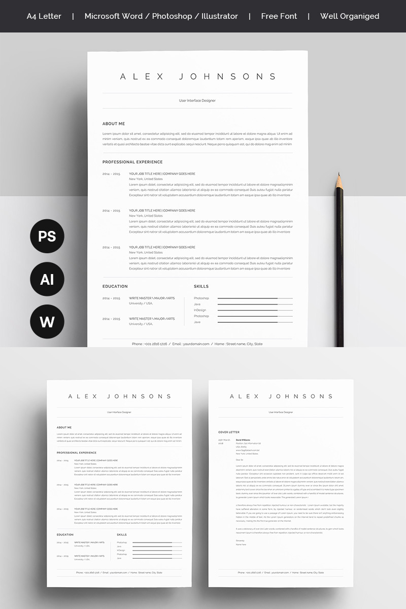Download Резюме "Alex Johnsons Resume Template" / Alex Johnsons Resume Template - Резюме на тему графика a4 black bright career clean cv resume cover letter creative curriculum vitae design docx editable elegant job light minimalist professional