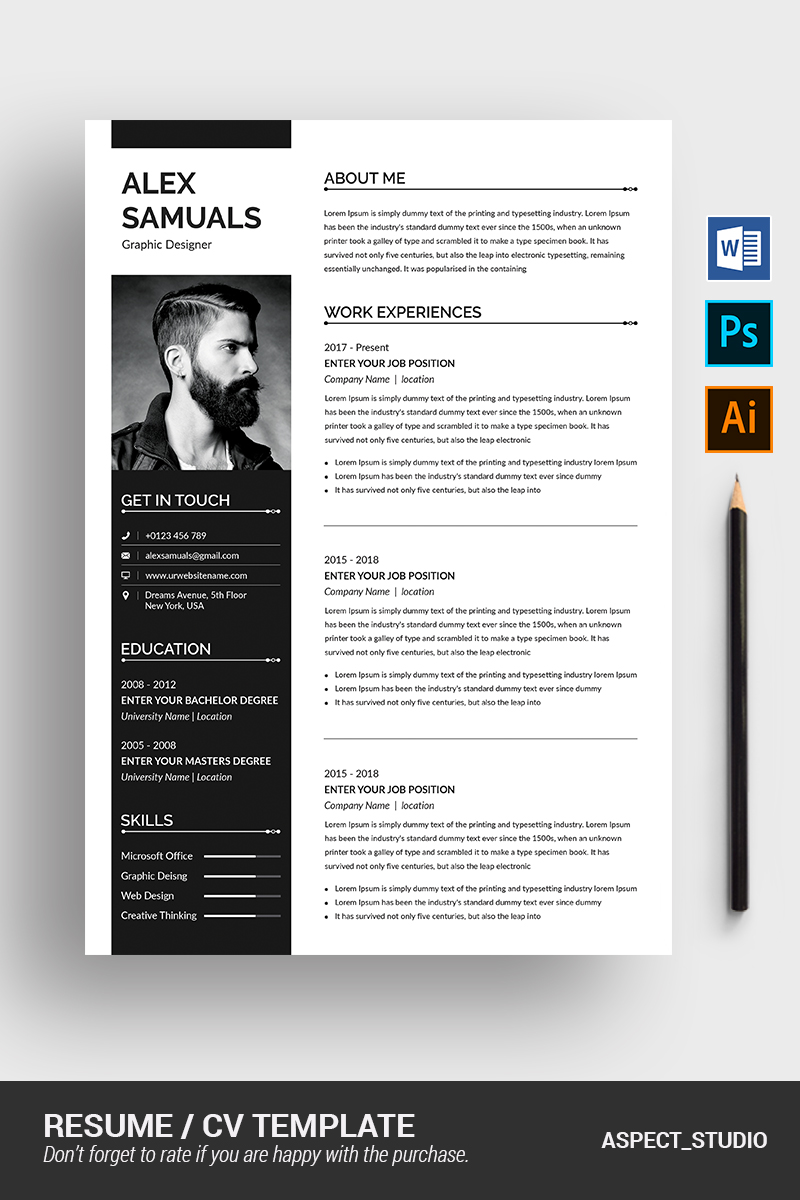 Download Резюме "Alex Samuals Resume Template" / Alex Samuals Resume Template - Резюме на тему графика 1 page resume 2 3 a4 clean cover letter creative cv design document docx elegant employment infographic minimalist modern ms