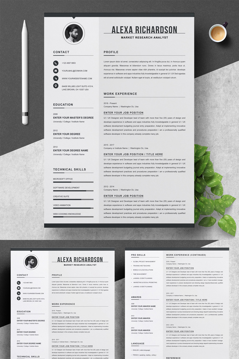 Download Резюме "Alexa Resume Template" / Alexa Resume Template - Резюме на тему графика 1 page resume 2 clean cv cover letter design template illustrator eps mac pages microsoft word modern photoshop psd professional