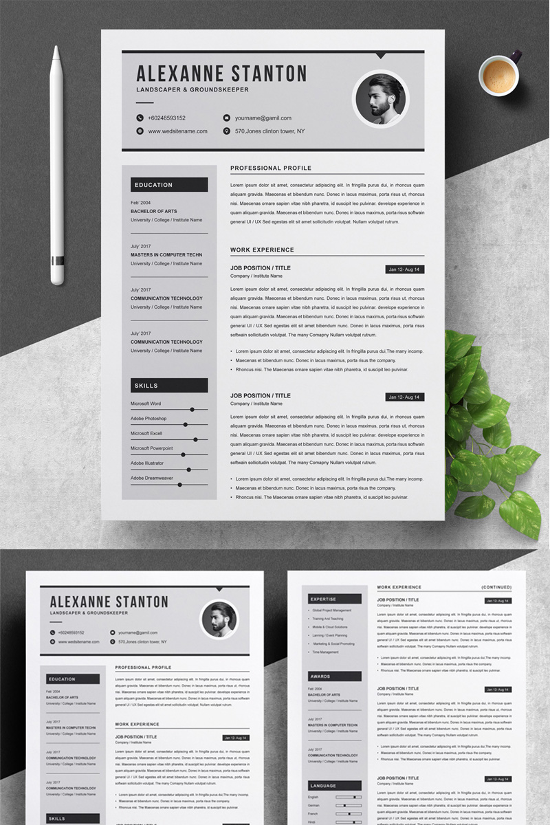 Download Резюме "Alexanne Resume Template" / Alexanne Resume Template - Резюме на тему графика 1 page resume 2 clean cv cover letter design template illustrator eps mac pages microsoft word modern photoshop psd professional