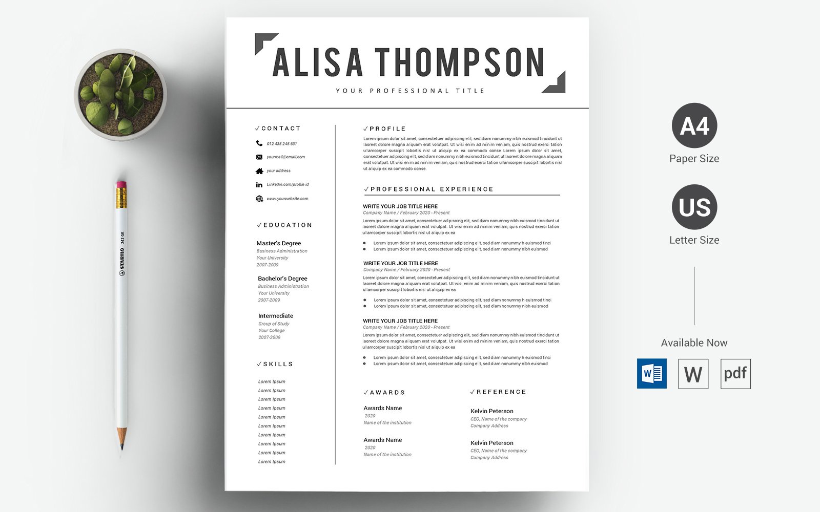 Download Резюме "Alisa Thompson - CV & Resume Template" / Alisa Thompson - CV & Resume Template - Резюме на тему графика clean,corporate identity,cover letter,docx,modern resume,print ready,professional resume,minimal cv design,a4 size,cv template,cv word template,job letter,curriculum vitae,cv,resume,blue,blac