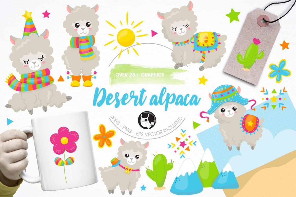 Download Vector "Alpaca illustration pack - Vector Image" / Alpaca illustration pack - Vector Image - Vector на тему графика illustration,flowers,vector,graphics,clipart,cactus,sun,clip art,icons,mountains,llama,alpaca,peru,desert,eps,prettygrafik