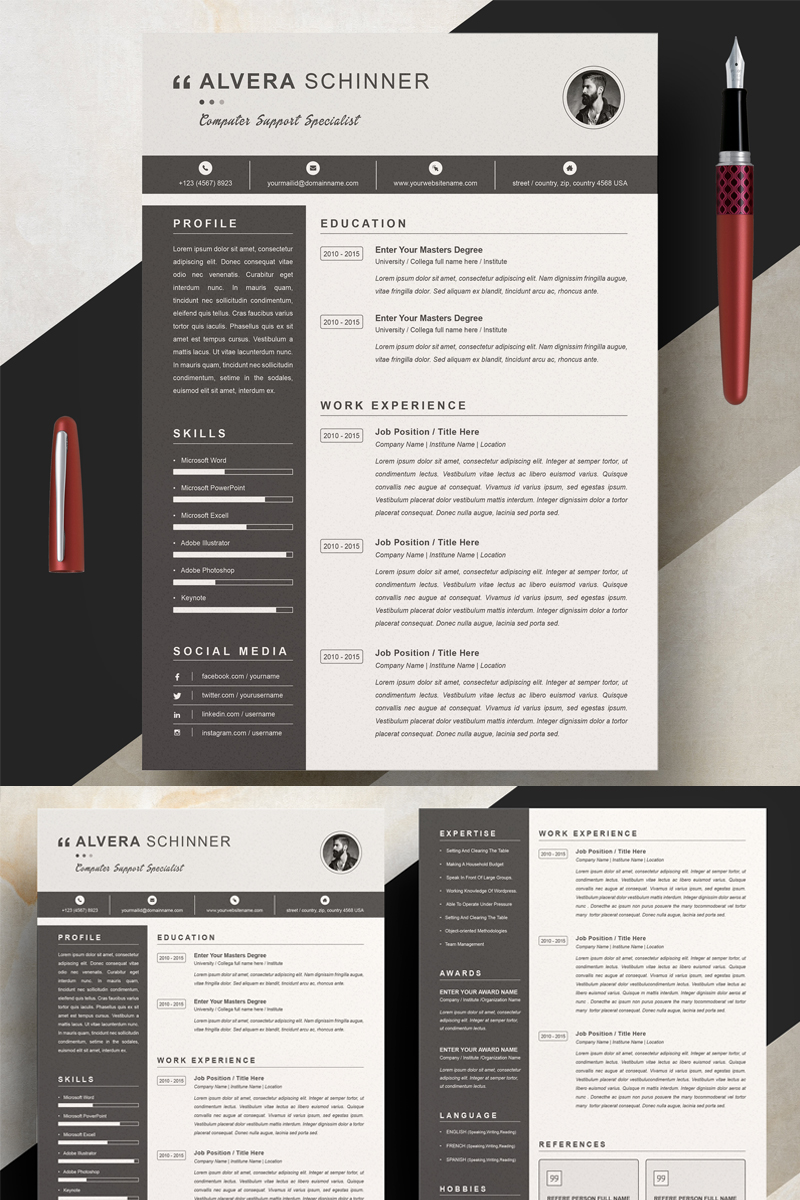 Download Резюме "Alvera Resume Template" / Alvera Resume Template - Резюме на тему графика 1 page resume 2 clean cv cover letter design template illustrator eps mac pages microsoft word modern photoshop psd professional