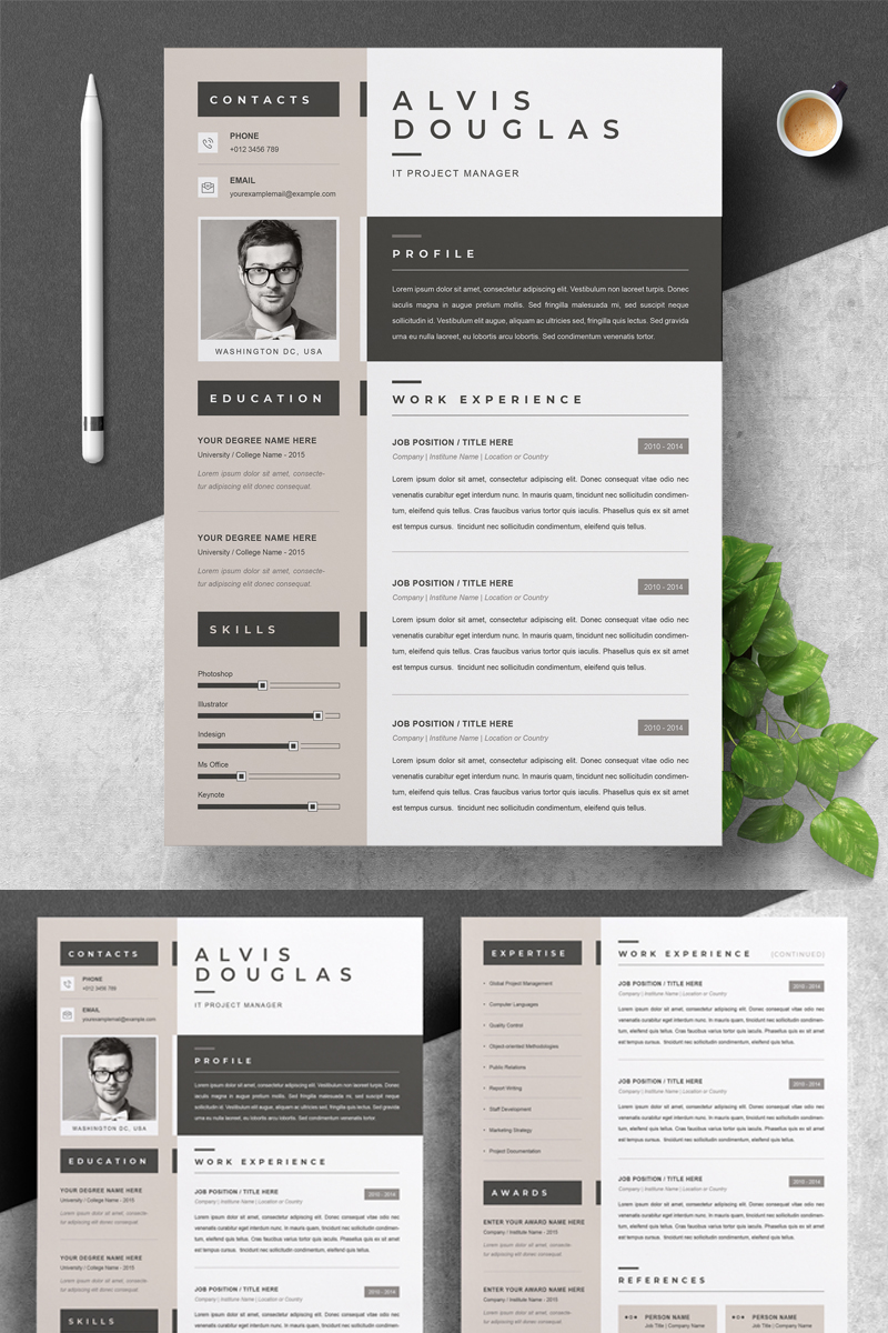 Download Резюме "Alvis Resume Template" / Alvis Resume Template - Резюме на тему графика 1 page resume 2 clean cv cover letter design template illustrator eps mac pages microsoft word modern photoshop psd professional