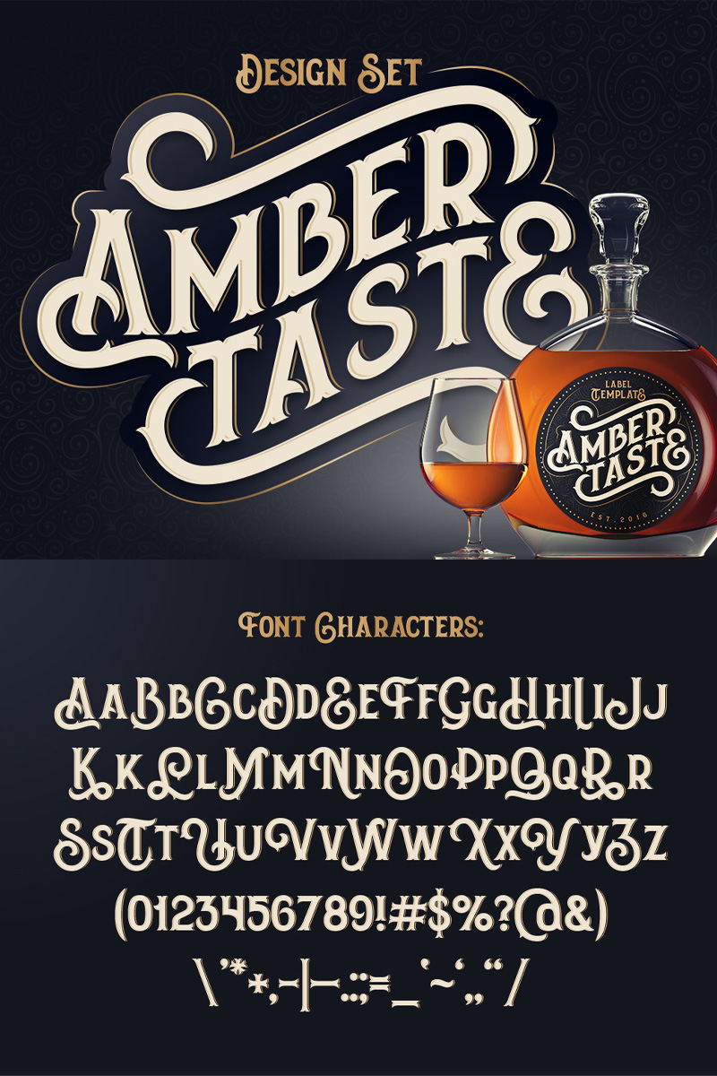 Download Шрифт "Amber Taste Font" / Amber Taste Font - Шрифт на тему графика stylized,decoration,font,alphabet,fine,tag,typeface,drink,vector,awesome,symbol,circle,name,graphic,old,alcohol,typography,abc,type,title