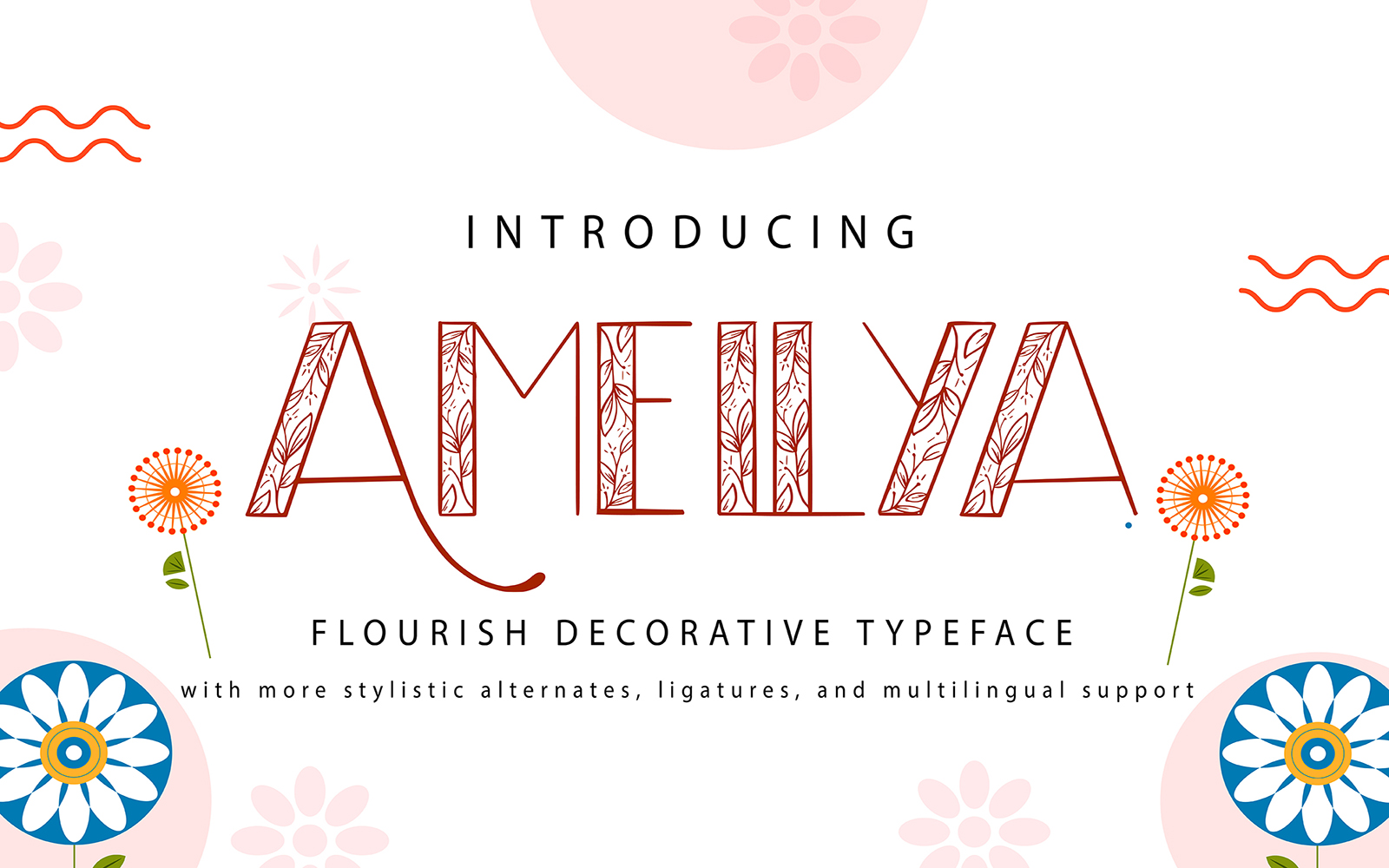 Download Шрифт "Amellya | Flourish Decorative Typeface Font" / Amellya | Flourish Decorative Typeface Font - Шрифт на тему графика decorative,vector,vintage,design,luxury,border,retro,sanserif,frame,label,ornate,element,decoration,line