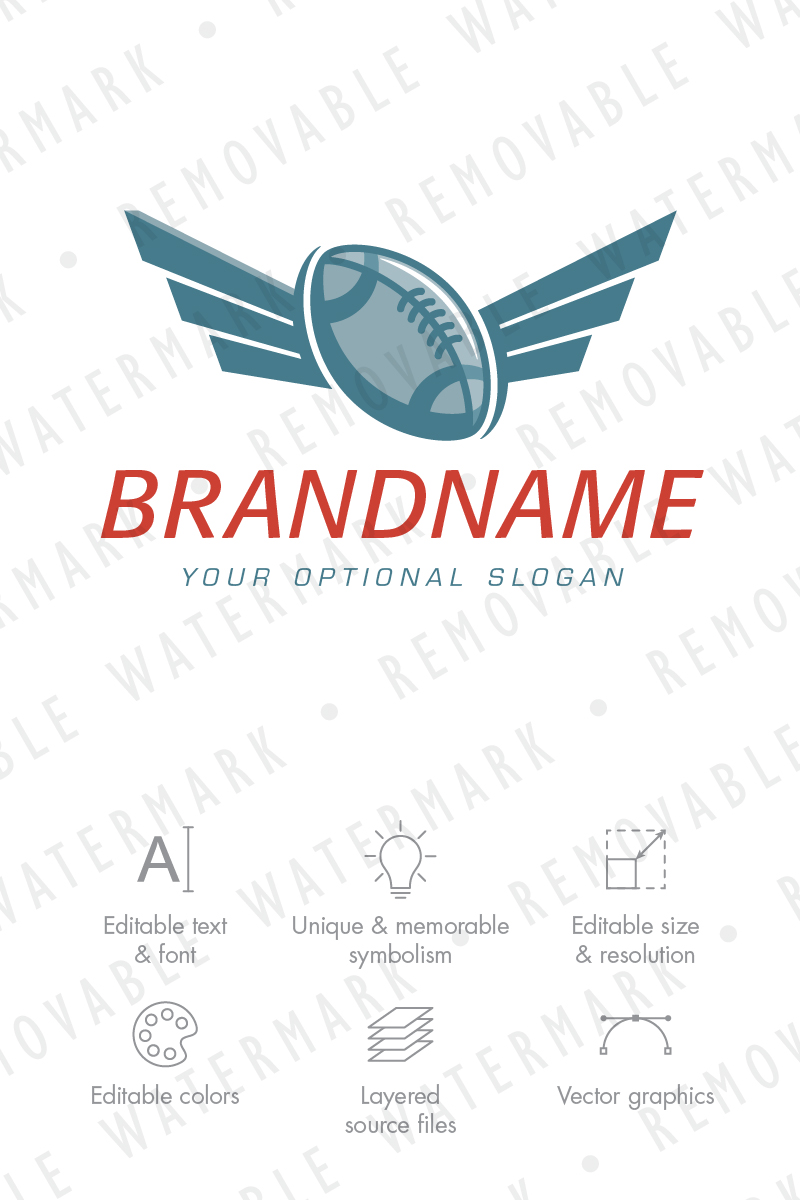 Download Шаблон логотипа "American Football Wings Logo Template" / American Football Wings Logo Template - Шаблон логотипа на тему графика game,american,football,victory,sport,goal,ball,wings,accessory,trophy,league,rugby,score,sky,club,logo,design,template,betting,event