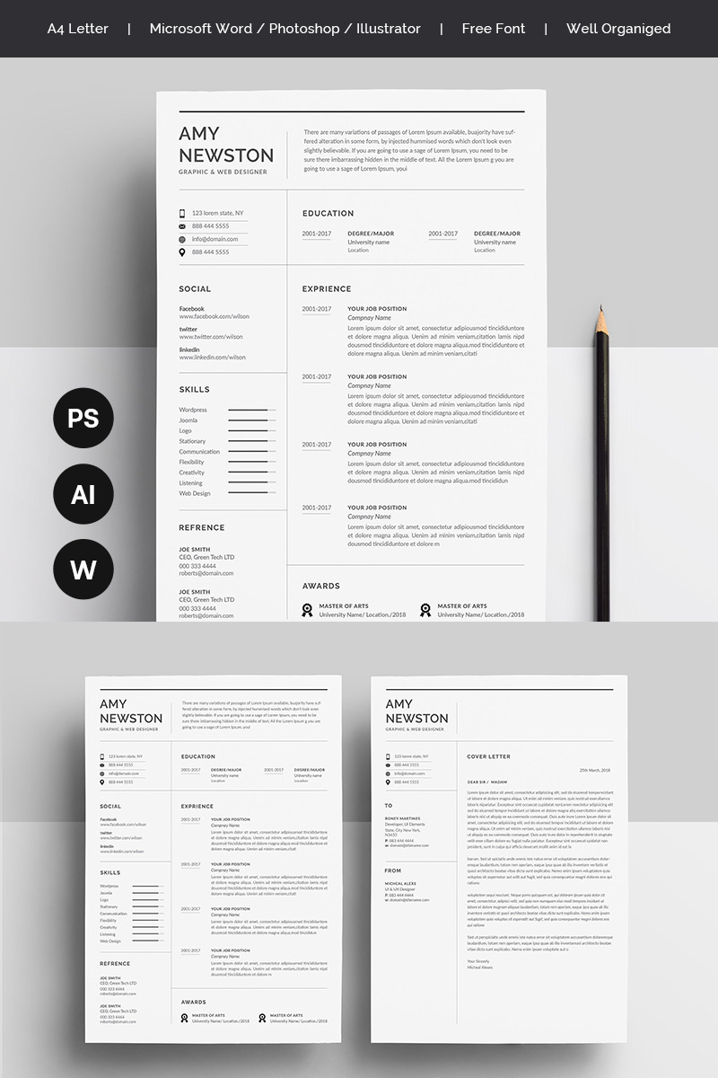 Download Резюме "Amy Newtons Resume Template" / Amy Newtons Resume Template - Резюме на тему графика a4 black bright career clean cv resume cover letter creative curriculum vitae design docx editable elegant job light minimalist professional