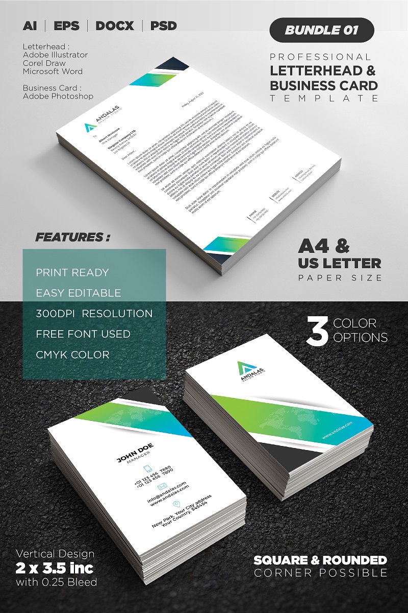 Download Фирменный стиль "Andalas Bundle - Corporate Identity Template" / Andalas Bundle - Corporate Identity Template - Фирменный стиль на тему графика a4 branding business letterhead clean corporate identity docx word template print ready colorful card professional multipurpose simple minimalist elegant creative