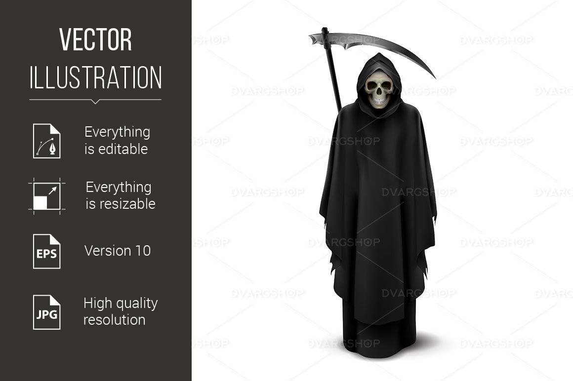 Download Vector "Angel of Death on White - Vector Image" / Angel of Death on White - Vector Image - Vector на тему графика angel,death,white,background,black,scy,spooky,demon,hood,paranormal,to die,evil,imagination,fear,statue,graphic,loose overall,bone,hell,skull