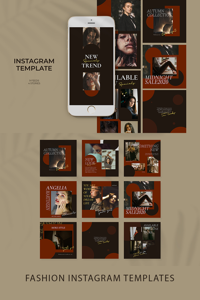 Download Шаблон для соцсетей "Angelia Instagram Templates for Social Media" / Angelia Instagram Templates for Social Media - Шаблон для соцсетей на тему графика business buy clothes clothing cloths coupon deal discount dress fashion flat design gif instagram marketing multipurpose page promotion retargeting sale