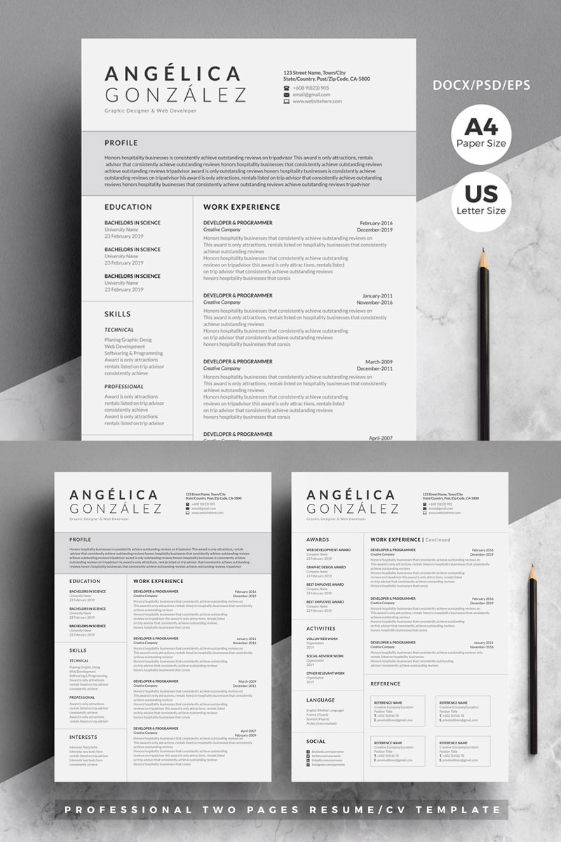 Download Резюме "Angelica Professional/Cv 4 Pages Pack Resume Template" / Angelica Professional/Cv 4 Pages Pack Resume Template - Резюме на тему графика resume,cv,template,clean,creative,modern,professional,infographic,minimal,minimalist,mac,pages,word,photoshop