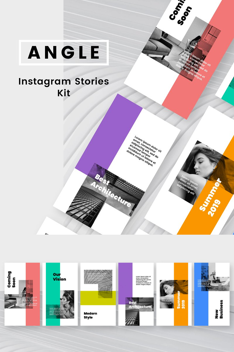 Download Шаблон для соцсетей "Angle Instagram Stories Kit Social Media Template" / Angle Instagram Stories Kit Social Media Template - Шаблон для соцсетей на тему графика social blog post insta stories instagram story modern simple minimal promo trendy fashion store shop magazine color banner