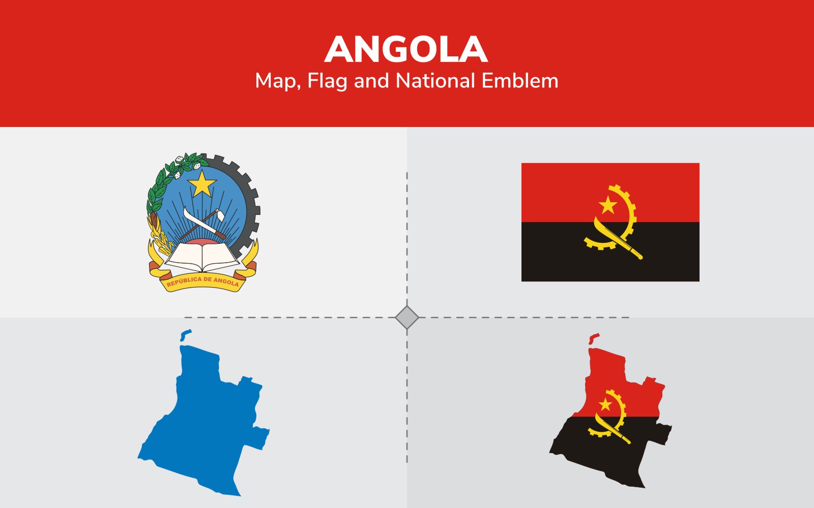 Download Иллюстрация "Angola Map, Flag and National Emblem - Illustration" / Angola Map, Flag and National Emblem - Illustration - Иллюстрация на тему графика continents,countries,map,political map,traveling,vector,emblem,national,flag,coat,arms,country,symbol,nations,state,sign,nation,badge,symbolic object,europe
