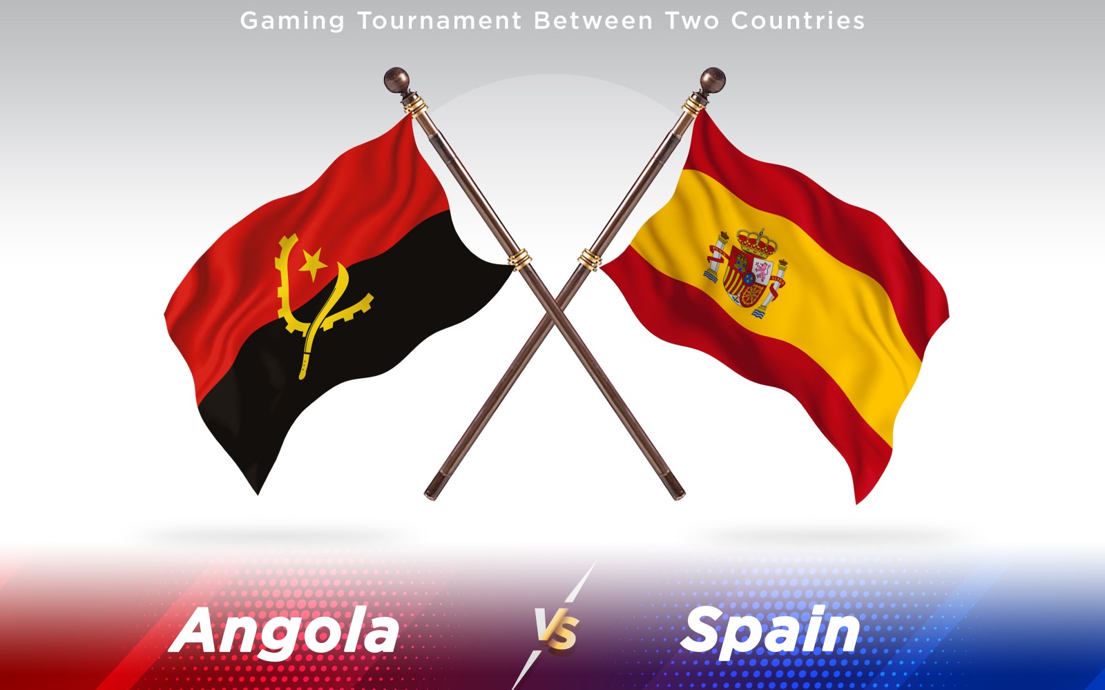 Download Иллюстрация "Angola versus Spain Two Countries Flags - Illustration" / Angola versus Spain Two Countries Flags - Illustration - Иллюстрация на тему графика national,patriotic,europe,asia,republic,map,flag,country,cartography,geography,nation,illustration,graphic,vector,state,world,isolated,symbol,border,icon