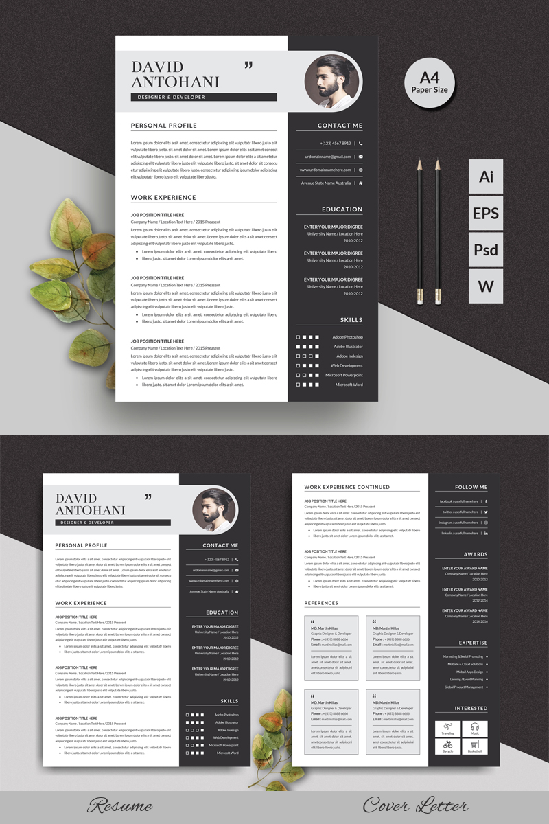 Download Резюме "Antohani Modern Resume Template" / Antohani Modern Resume Template - Резюме на тему графика resume cv clean creative word infographic modern professional student mac pages manager template bankers doctors job seekers