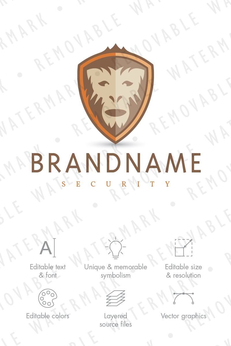 Download Шаблон логотипа "Ape Shield Logo Template" / Ape Shield Logo Template - Шаблон логотипа на тему графика safety protection defense strength support primate animal ape monkey shield escutcheon security bulwark logo design template entertainment stylized crest environment