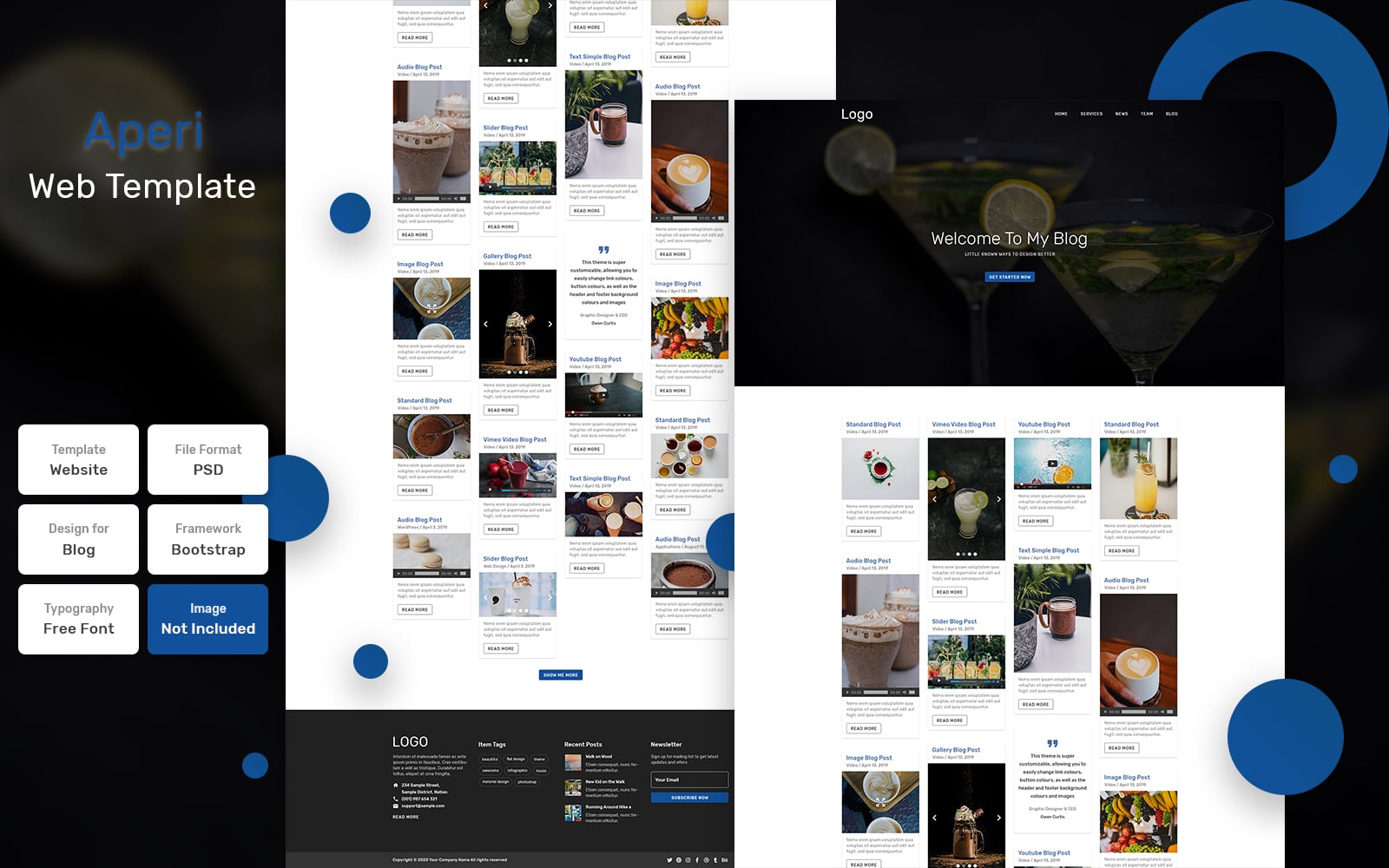 Download PSD шаблон "Aperi - Blog Material PSD Template" / Aperi - Blog Material PSD Template - PSD шаблон на тему графика design,template,web,website,web design,landing page,page,web template,landing,business,marketing,digital,seo,blog,portfolio,services,responsive,theme,agency